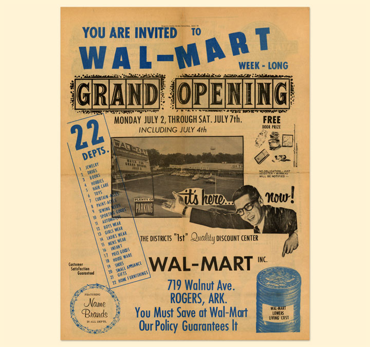 Recognizing that discount stores were the future of retail, Sam tried to convince the Ben Franklin franchise to enter the discount business with him. Unfortunately, they were not interested in taking that risk. With growing competition and resistance from his franchisor, Sam realized that he would have to go it alone. This realization led to Sam to open his first Walmart store in Rogers, Arkansas in 1962.